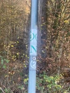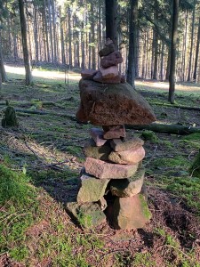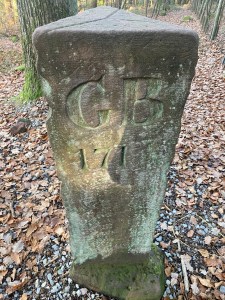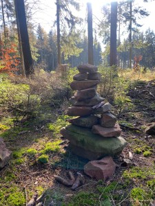 Also machte ich mich am Samstag, 14.11.2020, ab nach Hesselbach und startete dort Etappe 5. Ziel war es an diesem Tag dem Nibelungensteig bis nach Preunschen zu folgen. Der Steig führte mich in den Wald rund um Hesselbach und nach kurzer Zeit kam ich an das Dreiländereck mit dem Drei-Länder-Stein.